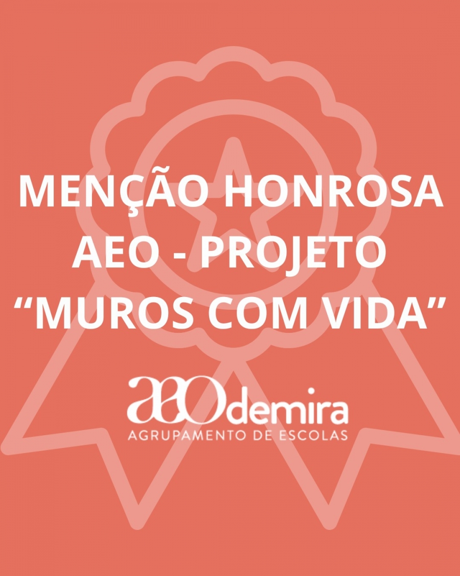 O AEO foi premiado com uma Menção Honrosa no projeto/desafio Eco-Escolas 2024/25: “Muros Com Vida” promovido pela ABAAE | Eco-Escolas. Os nossos parabéns, aos alunos e professores acompanhantes no desenvolvimento desta tarefa pela qualidade do trabalho apresentado! Podem consultar todos os premiados aqui. Aproveitamos para informar que a escola será convidada para estar presente no Dia Bandeiras Verdes Eco-Escolas, Galardão Eco-Escolas 2025 – para ser distinguida como premiada.